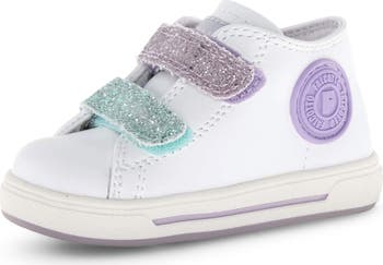 A padded collar and breathable leather lining provide cool comfort for tiny toes in this sneaker featuring a duo of adjustable straps that offer a secure and customized fit.