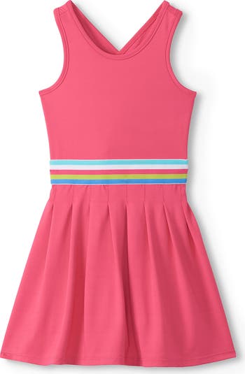 Your active kid will love playing and twirling in the soft-and-stretchy comfort of this pleated skirt dress.