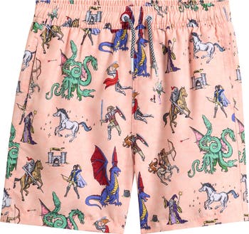 These quick-drying swim trunks feature a fun, vacay-ready print and a handy back flap pocket with drainage grommets to help prevent ballooning.