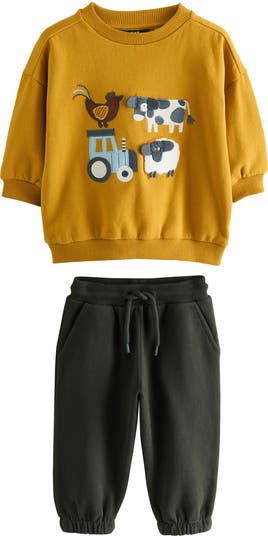 Your little one can stay cozy while showing off his favorite farmyard friends in this charming set featuring an appliqué sweatshirt paired with coordinating joggers.