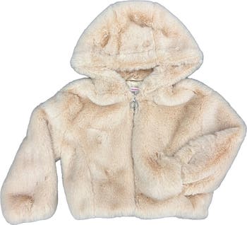 Get your kiddo ready for snuggle season with a hooded jacket made from plush faux fur.