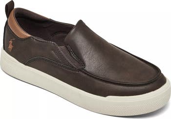 An embroidered polo rider adds a signature flourish to a low-profile sneaker designed in a slip-on silhouette with a durable cupsole for convenient play-ready wear.