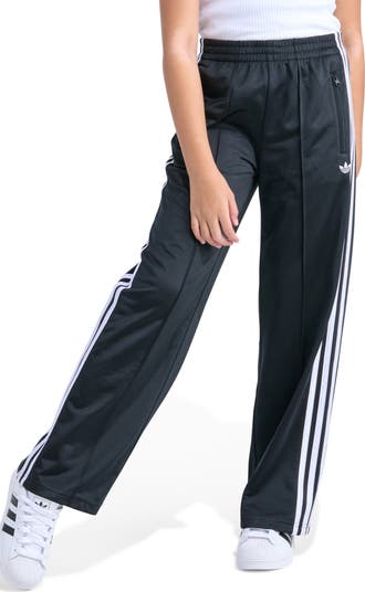 A Trefoil logo and 3-Stripes down the legs bring classic adidas style to these kid-size tricot track pants reimagined with wide legs.