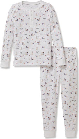 An adorable print covers these cozy long-sleeve pajamas made from supersoft pima cotton that spells sweet dreams for your kiddo.