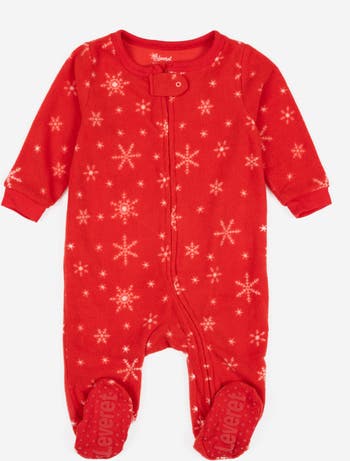 These fleece footed pajamas keep kids warm and comfortable with flame resistant fabric for safety. A full-length zipper with a protective chin guard makes changes easy, and non-slip grippers on the feet help prevent slips. The tagless label and machine-washable fabric add everyday comfort and convenience. Perfect for holiday photos, cozy winter nights, and thoughtful gifting. These holiday pajamas also make perfect Christmas pajamas for festive celebrations and family traditions.