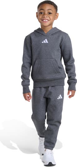 Cotton-blend fleece brings softness and warmth to a hoodie that pairs with matching sweatpants to keep your kid enjoying the cold in easy comfort. They work great together and with other cozy favorites for changing up a look without draining your budget.