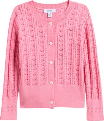 Classic rib knitting and polished buttons bring cozy charm to this cotton cardigan that keeps your little trendsetter comfy from classroom to playdate.