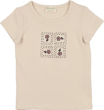 Boxed posies artfully decorate the front of this cotton-blend T-shirt that's the perfect summery piece for your little one.