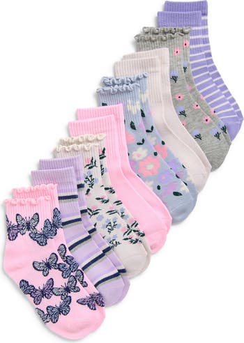 They'll love the playful mix of patterns that stand out all over these comfy crew socks.