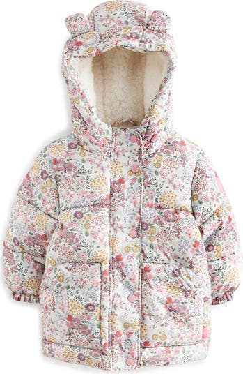 Now hear this: the cutest and coziest coat in your kiddo's collection has got to be a flowery one with a roomy, ear-embellished hood and a high-pile fleece lining.