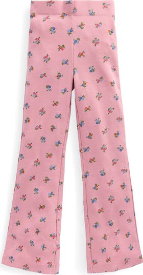 Rib-knit cotton leggings sprinkled with pretty posies are fashioned in a flared silhouette for a cool throwback look.