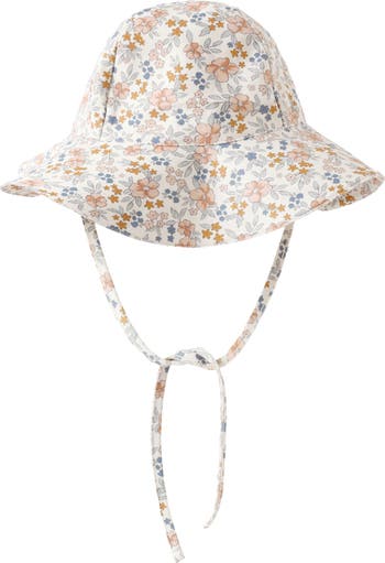 Keep your little one feeling breezy in this sun-protective floppy hat made with a floral print and easy ties.