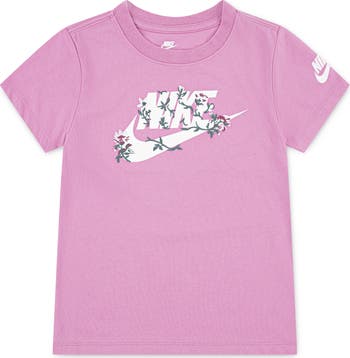 This kid-size T-shirt adds beautiful blooms to a classic logo and keeps your kid comfortable with its breathable cotton-blend fabrication.