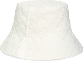 Textured jacquard blooms bring fresh flair to this kid-sized bucket hat made of breathable cotton terry.