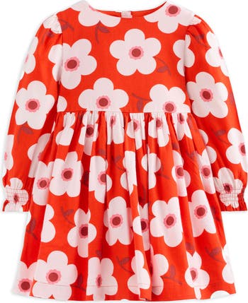 Bold blooms are sure to bring happy days in this cotton dress framed by voluminous sleeves with smocked cuffs.