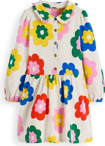 Balloon sleeves frame a roomy cotton-jersey shirtdress that's rendered in big bold blooms and finished with a ruffle-trimmed Peter Pan collar.