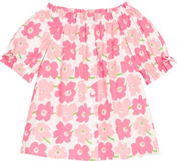 We L O V E the Millie Top. With a funky pink floral print and breezy short sleeved silhouette, we're sure you'll love it too! We love that the neckline can be styled on or off the shoulder for a versatile look she's sure to reach for on repeat!
