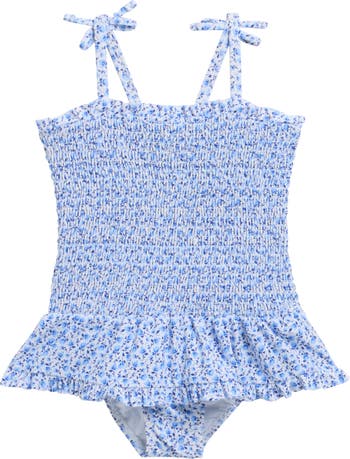 Your little swimmer will be oh-so-darling taking a dip in this sweetly smocked swimsuit made with sewn-in sun protection.