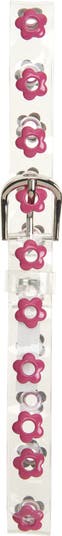 Floral accented eyelets add whimsical charm to a translucent belt that will complement your kiddo's adorable looks.