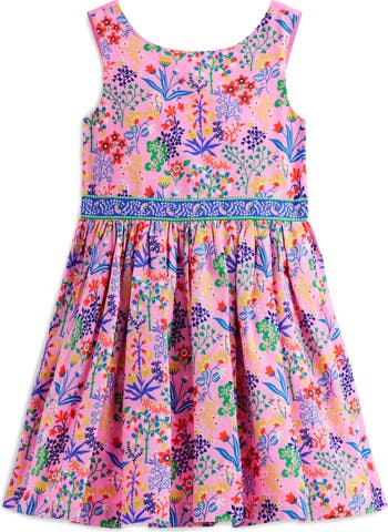Keep them picture-perfect in this cotton dress patterned in a vibrant wildflower field and cut in a silhouette featuring double back straps and a twirl-worthy skirt.
