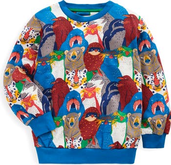 A audience of their favorite animals cover this everyday kid-sized sweatshirt made from soft cotton.