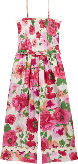 Your kiddo will make a picture-perfect entrance in this flower-powered jumpsuit designed with a stretchy smocked bodice trimmed with a playful ruffle and scalloped rickrack.