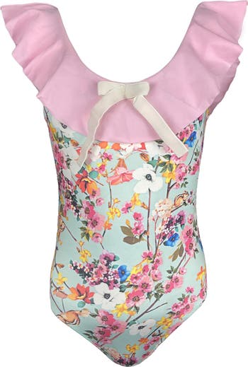 Kids' Floral Ruffle Bow Detail One-Piece Swimsuit