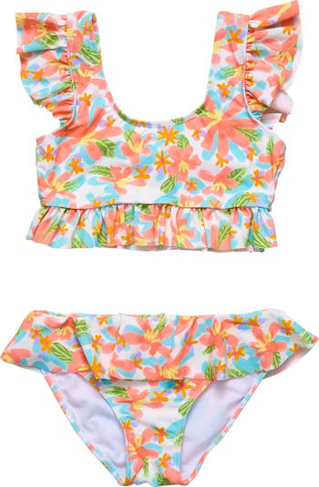Little ones will be ready for beach day in this adorable two-piece swimsuit that has UPF protection and adjustable straps for a just-right fit.