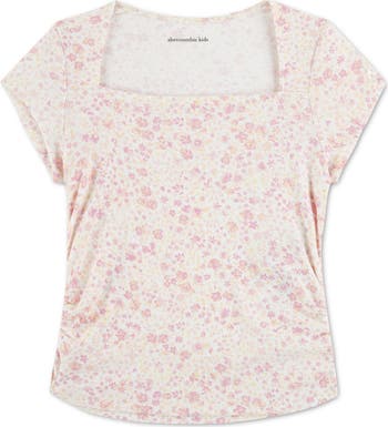 Ruching at the sides shapes a soft rib-knit top made in a sweet print with a fashion-forward square neck.