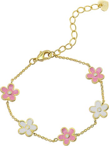 Your little flower enthusiast will bloom with this hand-painted station bracelet featuring shimmering cubic zirconia.