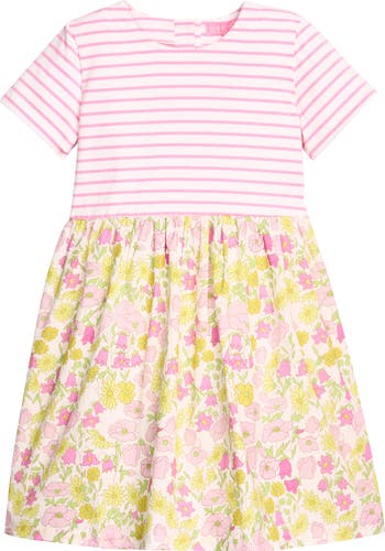 The BISBY girl loves to mix and match and the Rosie Dress allows her to do that in one step! We love the combination of our Bedford Buttercup floral print with hot pink stripes in this knit dress. Dress it up for a birthday party or dress it down for play time! Either way, it's sure to be a favorite.