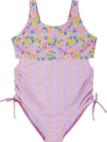 Side cutouts keep them feeling breezy as they splash and swim in this ruched one-piece swimsuit.