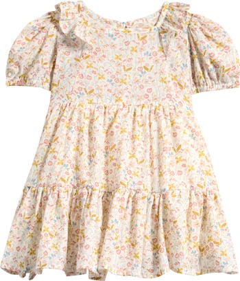 A ditsy floral print, puff sleeves and frilly trim amplify the warm-weather charm of this adorable tiered dress crafted with baby's comfort in mind from soft, breathable organic cotton.