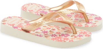 A colorfully printed footbed enlivens this cushy-soft flip-flop that will be a favorite of your little one for beach trips and beyond.