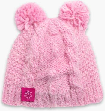 - Fun and unique chunky knit; Two poms are better than one.