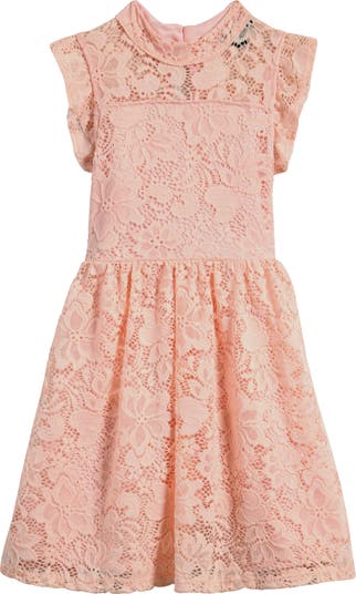 Ava & Yelly Kids' Flutter Sleeve Lace Party Dress, Alternate, color, Pink