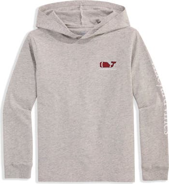 vineyard vines Kids' Football Whale Cotton Graphic Hoodie, Alternate, color, Grey Heather