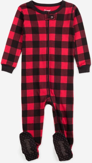 Leveret Kids Footed Plaid Cotton Matching Family Holiday Pajamas, Main, color, Plaid Black & Red