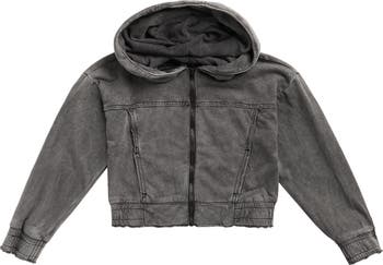 Cotton-rich French terry makes a breathable, lightweight layer of this zip-up hoodie fashioned with raw edges for a cool grunge look.