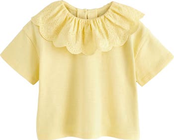 Adorn your stylish little one in this charming cotton T-shirt fashioned with a scalloped broderie collar.