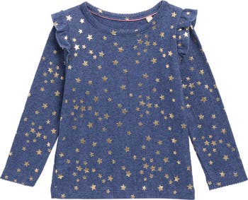 Playful shoulder ruffles dial up the fun on this plush cotton-blend top with a comfy feel and picture-day polish made for daily wear.