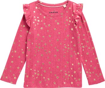 Playful shoulder ruffles dial up the fun on this plush cotton-blend top with a comfy feel and picture-day polish made for daily wear.