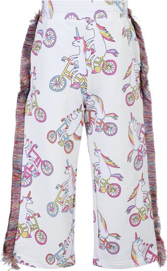 Multicolored unicorn 'manes' trim the sides of these whimsically printed track pants made from cotton French terry.