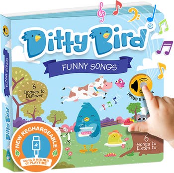 Ditty Bird is inviting all toddlers and preschoolers to discover the silliest songs he knows in this charming musical book. Let's wibble wobble all day long till you see a cow jumping over the moon. Your child will be sure to giggle as you both sing along to Johny Johny, Yes Papa, A Ram Sam Sam, Miss Polly Had a Dolly, Jelly on A Plate, Hey Diddle Diddle and Eeny Meeny Miny Moe.