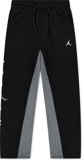 Jumpman logos bring winning energy to these kid-size sweatpants made from cozy cotton-blend fleece in a fun two-tone design.