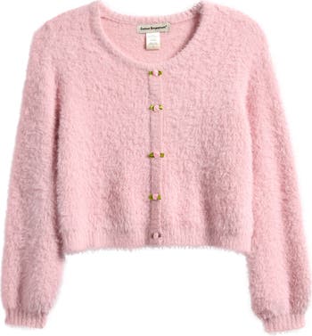 Fuzzy-soft eyelash yarn makes this cardigan the one that your child won't want to leave the house without.