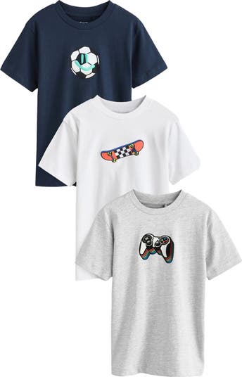 Your active little one will stay comfortable while participating in all sorts of gaming wearing this assorted set of soft cotton T-shirts featuring a fun mix of graphics and embroidery.