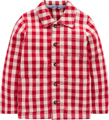 A workwear-inspired staple gets a kid-friendly refresh in this gingham chore jacket cut from stretch-cotton canvas with a button-front closure and neatly placed chest pocket.
