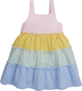 Introduce bold splashes of color to your tiny trendsetter's warm-weather wardrobe with this cotton-seersucker sundress cut in a tiered silhouette.