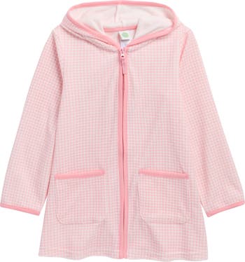 Long sleeves and an attached hood give them extra coverage when they get out of the pool and put on this adorable gingham cover-up.